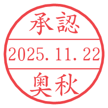 オプションの「電子透かし」をチェックし[生成]すると、見た目には分からないように、UNIXタイムスタンプを識別情報としてPNG形式の日付印に埋め込みます。 日付スタンプメーカーの使い方「部署」「名前」は最大8文字まで入力が可能です。「スタンプの色」を選択し、[生成]ボタン押下で印影画像が更新され、背景を透明に設定したPNG形式とPDF形式の印影画像がリンクからダウンロードできます。 オプションの「電子透かし」は、その性格上日付印ととても相性の良い付加サービスです。 別ページの「タイムスタンプと電子透かし」でも詳しく解説しますが、このオプションを追加することで、日付印が生成された日時に確かにその印が存在していることが証明されます。 ![]() 奥秋さんの電子印鑑が作れます。社内でのデータ書類閲覧確認用など、認印的な使い方のできる電子印鑑が作れます。 ![]() 古代文字で落款印が作れます。「落款スタンプメーカー」で作品を引き立たせる落款印が作れます。