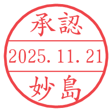 オプションの「電子透かし」をチェックし[生成]すると、見た目には分からないように、UNIXタイムスタンプを識別情報としてPNG形式の日付印に埋め込みます。 日付スタンプメーカーの使い方「部署」「名前」は最大8文字まで入力が可能です。「スタンプの色」を選択し、[生成]ボタン押下で印影画像が更新され、背景を透明に設定したPNG形式とPDF形式の印影画像がリンクからダウンロードできます。 オプションの「電子透かし」は、その性格上日付印ととても相性の良い付加サービスです。 別ページの「タイムスタンプと電子透かし」でも詳しく解説しますが、このオプションを追加することで、日付印が生成された日時に確かにその印が存在していることが証明されます。 ![]() 妙島さんの電子印鑑が作れます。社内でのデータ書類閲覧確認用など、認印的な使い方のできる電子印鑑が作れます。 ![]() 古代文字で落款印が作れます。「落款スタンプメーカー」で作品を引き立たせる落款印が作れます。