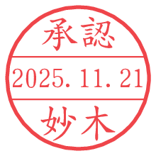 オプションの「電子透かし」をチェックし[生成]すると、見た目には分からないように、UNIXタイムスタンプを識別情報としてPNG形式の日付印に埋め込みます。 日付スタンプメーカーの使い方「部署」「名前」は最大8文字まで入力が可能です。「スタンプの色」を選択し、[生成]ボタン押下で印影画像が更新され、背景を透明に設定したPNG形式とPDF形式の印影画像がリンクからダウンロードできます。 オプションの「電子透かし」は、その性格上日付印ととても相性の良い付加サービスです。 別ページの「タイムスタンプと電子透かし」でも詳しく解説しますが、このオプションを追加することで、日付印が生成された日時に確かにその印が存在していることが証明されます。 ![]() 妙木さんの電子印鑑が作れます。社内でのデータ書類閲覧確認用など、認印的な使い方のできる電子印鑑が作れます。 ![]() 古代文字で落款印が作れます。「落款スタンプメーカー」で作品を引き立たせる落款印が作れます。