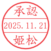 オプションの「電子透かし」をチェックし[生成]すると、見た目には分からないように、UNIXタイムスタンプを識別情報としてPNG形式の日付印に埋め込みます。 日付スタンプメーカーの使い方「部署」「名前」は最大8文字まで入力が可能です。「スタンプの色」を選択し、[生成]ボタン押下で印影画像が更新され、背景を透明に設定したPNG形式とPDF形式の印影画像がリンクからダウンロードできます。 オプションの「電子透かし」は、その性格上日付印ととても相性の良い付加サービスです。 別ページの「タイムスタンプと電子透かし」でも詳しく解説しますが、このオプションを追加することで、日付印が生成された日時に確かにその印が存在していることが証明されます。 ![]() 姫松さんの電子印鑑が作れます。社内でのデータ書類閲覧確認用など、認印的な使い方のできる電子印鑑が作れます。 ![]() 古代文字で落款印が作れます。「落款スタンプメーカー」で作品を引き立たせる落款印が作れます。
