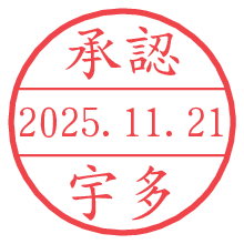 オプションの「電子透かし」をチェックし[生成]すると、見た目には分からないように、UNIXタイムスタンプを識別情報としてPNG形式の日付印に埋め込みます。 日付スタンプメーカーの使い方「部署」「名前」は最大8文字まで入力が可能です。「スタンプの色」を選択し、[生成]ボタン押下で印影画像が更新され、背景を透明に設定したPNG形式とPDF形式の印影画像がリンクからダウンロードできます。 オプションの「電子透かし」は、その性格上日付印ととても相性の良い付加サービスです。 別ページの「タイムスタンプと電子透かし」でも詳しく解説しますが、このオプションを追加することで、日付印が生成された日時に確かにその印が存在していることが証明されます。 ![]() 宇多さんの電子印鑑が作れます。社内でのデータ書類閲覧確認用など、認印的な使い方のできる電子印鑑が作れます。 ![]() 古代文字で落款印が作れます。「落款スタンプメーカー」で作品を引き立たせる落款印が作れます。