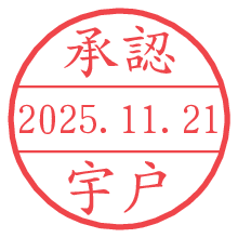 オプションの「電子透かし」をチェックし[生成]すると、見た目には分からないように、UNIXタイムスタンプを識別情報としてPNG形式の日付印に埋め込みます。 日付スタンプメーカーの使い方「部署」「名前」は最大8文字まで入力が可能です。「スタンプの色」を選択し、[生成]ボタン押下で印影画像が更新され、背景を透明に設定したPNG形式とPDF形式の印影画像がリンクからダウンロードできます。 オプションの「電子透かし」は、その性格上日付印ととても相性の良い付加サービスです。 別ページの「タイムスタンプと電子透かし」でも詳しく解説しますが、このオプションを追加することで、日付印が生成された日時に確かにその印が存在していることが証明されます。 ![]() 宇戸さんの電子印鑑が作れます。社内でのデータ書類閲覧確認用など、認印的な使い方のできる電子印鑑が作れます。 ![]() 古代文字で落款印が作れます。「落款スタンプメーカー」で作品を引き立たせる落款印が作れます。