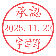 オプションの「電子透かし」をチェックし[生成]すると、見た目には分からないように、UNIXタイムスタンプを識別情報としてPNG形式の日付印に埋め込みます。 日付スタンプメーカーの使い方「部署」「名前」は最大8文字まで入力が可能です。「スタンプの色」を選択し、[生成]ボタン押下で印影画像が更新され、背景を透明に設定したPNG形式とPDF形式の印影画像がリンクからダウンロードできます。 オプションの「電子透かし」は、その性格上日付印ととても相性の良い付加サービスです。 別ページの「タイムスタンプと電子透かし」でも詳しく解説しますが、このオプションを追加することで、日付印が生成された日時に確かにその印が存在していることが証明されます。 ![]() 宇津野さんの電子印鑑が作れます。社内でのデータ書類閲覧確認用など、認印的な使い方のできる電子印鑑が作れます。 ![]() 古代文字で落款印が作れます。「落款スタンプメーカー」で作品を引き立たせる落款印が作れます。