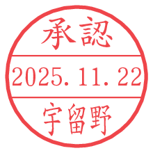 オプションの「電子透かし」をチェックし[生成]すると、見た目には分からないように、UNIXタイムスタンプを識別情報としてPNG形式の日付印に埋め込みます。 日付スタンプメーカーの使い方「部署」「名前」は最大8文字まで入力が可能です。「スタンプの色」を選択し、[生成]ボタン押下で印影画像が更新され、背景を透明に設定したPNG形式とPDF形式の印影画像がリンクからダウンロードできます。 オプションの「電子透かし」は、その性格上日付印ととても相性の良い付加サービスです。 別ページの「タイムスタンプと電子透かし」でも詳しく解説しますが、このオプションを追加することで、日付印が生成された日時に確かにその印が存在していることが証明されます。 ![]() 宇留野さんの電子印鑑が作れます。社内でのデータ書類閲覧確認用など、認印的な使い方のできる電子印鑑が作れます。 ![]() 古代文字で落款印が作れます。「落款スタンプメーカー」で作品を引き立たせる落款印が作れます。