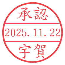 オプションの「電子透かし」をチェックし[生成]すると、見た目には分からないように、UNIXタイムスタンプを識別情報としてPNG形式の日付印に埋め込みます。 日付スタンプメーカーの使い方「部署」「名前」は最大8文字まで入力が可能です。「スタンプの色」を選択し、[生成]ボタン押下で印影画像が更新され、背景を透明に設定したPNG形式とPDF形式の印影画像がリンクからダウンロードできます。 オプションの「電子透かし」は、その性格上日付印ととても相性の良い付加サービスです。 別ページの「タイムスタンプと電子透かし」でも詳しく解説しますが、このオプションを追加することで、日付印が生成された日時に確かにその印が存在していることが証明されます。 ![]() 宇賀さんの電子印鑑が作れます。社内でのデータ書類閲覧確認用など、認印的な使い方のできる電子印鑑が作れます。 ![]() 古代文字で落款印が作れます。「落款スタンプメーカー」で作品を引き立たせる落款印が作れます。
