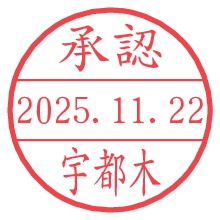 オプションの「電子透かし」をチェックし[生成]すると、見た目には分からないように、UNIXタイムスタンプを識別情報としてPNG形式の日付印に埋め込みます。 日付スタンプメーカーの使い方「部署」「名前」は最大8文字まで入力が可能です。「スタンプの色」を選択し、[生成]ボタン押下で印影画像が更新され、背景を透明に設定したPNG形式とPDF形式の印影画像がリンクからダウンロードできます。 オプションの「電子透かし」は、その性格上日付印ととても相性の良い付加サービスです。 別ページの「タイムスタンプと電子透かし」でも詳しく解説しますが、このオプションを追加することで、日付印が生成された日時に確かにその印が存在していることが証明されます。 ![]() 宇都木さんの電子印鑑が作れます。社内でのデータ書類閲覧確認用など、認印的な使い方のできる電子印鑑が作れます。 ![]() 古代文字で落款印が作れます。「落款スタンプメーカー」で作品を引き立たせる落款印が作れます。
