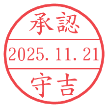 オプションの「電子透かし」をチェックし[生成]すると、見た目には分からないように、UNIXタイムスタンプを識別情報としてPNG形式の日付印に埋め込みます。 日付スタンプメーカーの使い方「部署」「名前」は最大8文字まで入力が可能です。「スタンプの色」を選択し、[生成]ボタン押下で印影画像が更新され、背景を透明に設定したPNG形式とPDF形式の印影画像がリンクからダウンロードできます。 オプションの「電子透かし」は、その性格上日付印ととても相性の良い付加サービスです。 別ページの「タイムスタンプと電子透かし」でも詳しく解説しますが、このオプションを追加することで、日付印が生成された日時に確かにその印が存在していることが証明されます。 ![]() 守吉さんの電子印鑑が作れます。社内でのデータ書類閲覧確認用など、認印的な使い方のできる電子印鑑が作れます。 ![]() 古代文字で落款印が作れます。「落款スタンプメーカー」で作品を引き立たせる落款印が作れます。