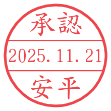 オプションの「電子透かし」をチェックし[生成]すると、見た目には分からないように、UNIXタイムスタンプを識別情報としてPNG形式の日付印に埋め込みます。 日付スタンプメーカーの使い方「部署」「名前」は最大8文字まで入力が可能です。「スタンプの色」を選択し、[生成]ボタン押下で印影画像が更新され、背景を透明に設定したPNG形式とPDF形式の印影画像がリンクからダウンロードできます。 オプションの「電子透かし」は、その性格上日付印ととても相性の良い付加サービスです。 別ページの「タイムスタンプと電子透かし」でも詳しく解説しますが、このオプションを追加することで、日付印が生成された日時に確かにその印が存在していることが証明されます。 ![]() 安平さんの電子印鑑が作れます。社内でのデータ書類閲覧確認用など、認印的な使い方のできる電子印鑑が作れます。 ![]() 古代文字で落款印が作れます。「落款スタンプメーカー」で作品を引き立たせる落款印が作れます。