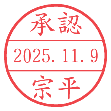 オプションの「電子透かし」をチェックし[生成]すると、見た目には分からないように、UNIXタイムスタンプを識別情報としてPNG形式の日付印に埋め込みます。 日付スタンプメーカーの使い方「部署」「名前」は最大8文字まで入力が可能です。「スタンプの色」を選択し、[生成]ボタン押下で印影画像が更新され、背景を透明に設定したPNG形式とPDF形式の印影画像がリンクからダウンロードできます。 オプションの「電子透かし」は、その性格上日付印ととても相性の良い付加サービスです。 別ページの「タイムスタンプと電子透かし」でも詳しく解説しますが、このオプションを追加することで、日付印が生成された日時に確かにその印が存在していることが証明されます。 ![]() 宗平さんの電子印鑑が作れます。社内でのデータ書類閲覧確認用など、認印的な使い方のできる電子印鑑が作れます。 ![]() 古代文字で落款印が作れます。「落款スタンプメーカー」で作品を引き立たせる落款印が作れます。
