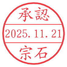 オプションの「電子透かし」をチェックし[生成]すると、見た目には分からないように、UNIXタイムスタンプを識別情報としてPNG形式の日付印に埋め込みます。 日付スタンプメーカーの使い方「部署」「名前」は最大8文字まで入力が可能です。「スタンプの色」を選択し、[生成]ボタン押下で印影画像が更新され、背景を透明に設定したPNG形式とPDF形式の印影画像がリンクからダウンロードできます。 オプションの「電子透かし」は、その性格上日付印ととても相性の良い付加サービスです。 別ページの「タイムスタンプと電子透かし」でも詳しく解説しますが、このオプションを追加することで、日付印が生成された日時に確かにその印が存在していることが証明されます。 ![]() 宗石さんの電子印鑑が作れます。社内でのデータ書類閲覧確認用など、認印的な使い方のできる電子印鑑が作れます。 ![]() 古代文字で落款印が作れます。「落款スタンプメーカー」で作品を引き立たせる落款印が作れます。