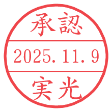 オプションの「電子透かし」をチェックし[生成]すると、見た目には分からないように、UNIXタイムスタンプを識別情報としてPNG形式の日付印に埋め込みます。 日付スタンプメーカーの使い方「部署」「名前」は最大8文字まで入力が可能です。「スタンプの色」を選択し、[生成]ボタン押下で印影画像が更新され、背景を透明に設定したPNG形式とPDF形式の印影画像がリンクからダウンロードできます。 オプションの「電子透かし」は、その性格上日付印ととても相性の良い付加サービスです。 別ページの「タイムスタンプと電子透かし」でも詳しく解説しますが、このオプションを追加することで、日付印が生成された日時に確かにその印が存在していることが証明されます。 ![]() 実光さんの電子印鑑が作れます。社内でのデータ書類閲覧確認用など、認印的な使い方のできる電子印鑑が作れます。 ![]() 古代文字で落款印が作れます。「落款スタンプメーカー」で作品を引き立たせる落款印が作れます。