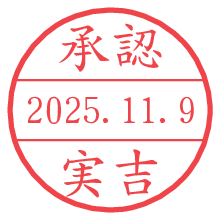 オプションの「電子透かし」をチェックし[生成]すると、見た目には分からないように、UNIXタイムスタンプを識別情報としてPNG形式の日付印に埋め込みます。 日付スタンプメーカーの使い方「部署」「名前」は最大8文字まで入力が可能です。「スタンプの色」を選択し、[生成]ボタン押下で印影画像が更新され、背景を透明に設定したPNG形式とPDF形式の印影画像がリンクからダウンロードできます。 オプションの「電子透かし」は、その性格上日付印ととても相性の良い付加サービスです。 別ページの「タイムスタンプと電子透かし」でも詳しく解説しますが、このオプションを追加することで、日付印が生成された日時に確かにその印が存在していることが証明されます。 ![]() 実吉さんの電子印鑑が作れます。社内でのデータ書類閲覧確認用など、認印的な使い方のできる電子印鑑が作れます。 ![]() 古代文字で落款印が作れます。「落款スタンプメーカー」で作品を引き立たせる落款印が作れます。
