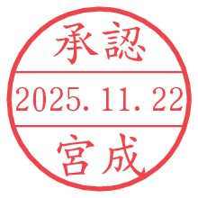 オプションの「電子透かし」をチェックし[生成]すると、見た目には分からないように、UNIXタイムスタンプを識別情報としてPNG形式の日付印に埋め込みます。 日付スタンプメーカーの使い方「部署」「名前」は最大8文字まで入力が可能です。「スタンプの色」を選択し、[生成]ボタン押下で印影画像が更新され、背景を透明に設定したPNG形式とPDF形式の印影画像がリンクからダウンロードできます。 オプションの「電子透かし」は、その性格上日付印ととても相性の良い付加サービスです。 別ページの「タイムスタンプと電子透かし」でも詳しく解説しますが、このオプションを追加することで、日付印が生成された日時に確かにその印が存在していることが証明されます。 ![]() 宮成さんの電子印鑑が作れます。社内でのデータ書類閲覧確認用など、認印的な使い方のできる電子印鑑が作れます。 ![]() 古代文字で落款印が作れます。「落款スタンプメーカー」で作品を引き立たせる落款印が作れます。