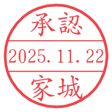 オプションの「電子透かし」をチェックし[生成]すると、見た目には分からないように、UNIXタイムスタンプを識別情報としてPNG形式の日付印に埋め込みます。 日付スタンプメーカーの使い方「部署」「名前」は最大8文字まで入力が可能です。「スタンプの色」を選択し、[生成]ボタン押下で印影画像が更新され、背景を透明に設定したPNG形式とPDF形式の印影画像がリンクからダウンロードできます。 オプションの「電子透かし」は、その性格上日付印ととても相性の良い付加サービスです。 別ページの「タイムスタンプと電子透かし」でも詳しく解説しますが、このオプションを追加することで、日付印が生成された日時に確かにその印が存在していることが証明されます。 ![]() 家城さんの電子印鑑が作れます。社内でのデータ書類閲覧確認用など、認印的な使い方のできる電子印鑑が作れます。 ![]() 古代文字で落款印が作れます。「落款スタンプメーカー」で作品を引き立たせる落款印が作れます。