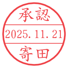 オプションの「電子透かし」をチェックし[生成]すると、見た目には分からないように、UNIXタイムスタンプを識別情報としてPNG形式の日付印に埋め込みます。 日付スタンプメーカーの使い方「部署」「名前」は最大8文字まで入力が可能です。「スタンプの色」を選択し、[生成]ボタン押下で印影画像が更新され、背景を透明に設定したPNG形式とPDF形式の印影画像がリンクからダウンロードできます。 オプションの「電子透かし」は、その性格上日付印ととても相性の良い付加サービスです。 別ページの「タイムスタンプと電子透かし」でも詳しく解説しますが、このオプションを追加することで、日付印が生成された日時に確かにその印が存在していることが証明されます。 ![]() 寄田さんの電子印鑑が作れます。社内でのデータ書類閲覧確認用など、認印的な使い方のできる電子印鑑が作れます。 ![]() 古代文字で落款印が作れます。「落款スタンプメーカー」で作品を引き立たせる落款印が作れます。