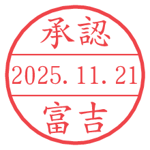 オプションの「電子透かし」をチェックし[生成]すると、見た目には分からないように、UNIXタイムスタンプを識別情報としてPNG形式の日付印に埋め込みます。 日付スタンプメーカーの使い方「部署」「名前」は最大8文字まで入力が可能です。「スタンプの色」を選択し、[生成]ボタン押下で印影画像が更新され、背景を透明に設定したPNG形式とPDF形式の印影画像がリンクからダウンロードできます。 オプションの「電子透かし」は、その性格上日付印ととても相性の良い付加サービスです。 別ページの「タイムスタンプと電子透かし」でも詳しく解説しますが、このオプションを追加することで、日付印が生成された日時に確かにその印が存在していることが証明されます。 ![]() 富吉さんの電子印鑑が作れます。社内でのデータ書類閲覧確認用など、認印的な使い方のできる電子印鑑が作れます。 ![]() 古代文字で落款印が作れます。「落款スタンプメーカー」で作品を引き立たせる落款印が作れます。