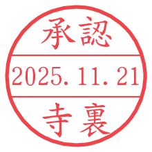 オプションの「電子透かし」をチェックし[生成]すると、見た目には分からないように、UNIXタイムスタンプを識別情報としてPNG形式の日付印に埋め込みます。 日付スタンプメーカーの使い方「部署」「名前」は最大8文字まで入力が可能です。「スタンプの色」を選択し、[生成]ボタン押下で印影画像が更新され、背景を透明に設定したPNG形式とPDF形式の印影画像がリンクからダウンロードできます。 オプションの「電子透かし」は、その性格上日付印ととても相性の良い付加サービスです。 別ページの「タイムスタンプと電子透かし」でも詳しく解説しますが、このオプションを追加することで、日付印が生成された日時に確かにその印が存在していることが証明されます。 ![]() 寺裏さんの電子印鑑が作れます。社内でのデータ書類閲覧確認用など、認印的な使い方のできる電子印鑑が作れます。 ![]() 古代文字で落款印が作れます。「落款スタンプメーカー」で作品を引き立たせる落款印が作れます。