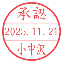 オプションの「電子透かし」をチェックし[生成]すると、見た目には分からないように、UNIXタイムスタンプを識別情報としてPNG形式の日付印に埋め込みます。 日付スタンプメーカーの使い方「部署」「名前」は最大8文字まで入力が可能です。「スタンプの色」を選択し、[生成]ボタン押下で印影画像が更新され、背景を透明に設定したPNG形式とPDF形式の印影画像がリンクからダウンロードできます。 オプションの「電子透かし」は、その性格上日付印ととても相性の良い付加サービスです。 別ページの「タイムスタンプと電子透かし」でも詳しく解説しますが、このオプションを追加することで、日付印が生成された日時に確かにその印が存在していることが証明されます。 ![]() 小中沢さんの電子印鑑が作れます。社内でのデータ書類閲覧確認用など、認印的な使い方のできる電子印鑑が作れます。 ![]() 古代文字で落款印が作れます。「落款スタンプメーカー」で作品を引き立たせる落款印が作れます。