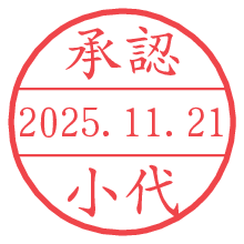 オプションの「電子透かし」をチェックし[生成]すると、見た目には分からないように、UNIXタイムスタンプを識別情報としてPNG形式の日付印に埋め込みます。 日付スタンプメーカーの使い方「部署」「名前」は最大8文字まで入力が可能です。「スタンプの色」を選択し、[生成]ボタン押下で印影画像が更新され、背景を透明に設定したPNG形式とPDF形式の印影画像がリンクからダウンロードできます。 オプションの「電子透かし」は、その性格上日付印ととても相性の良い付加サービスです。 別ページの「タイムスタンプと電子透かし」でも詳しく解説しますが、このオプションを追加することで、日付印が生成された日時に確かにその印が存在していることが証明されます。 ![]() 小代さんの電子印鑑が作れます。社内でのデータ書類閲覧確認用など、認印的な使い方のできる電子印鑑が作れます。 ![]() 古代文字で落款印が作れます。「落款スタンプメーカー」で作品を引き立たせる落款印が作れます。