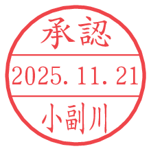 オプションの「電子透かし」をチェックし[生成]すると、見た目には分からないように、UNIXタイムスタンプを識別情報としてPNG形式の日付印に埋め込みます。 日付スタンプメーカーの使い方「部署」「名前」は最大8文字まで入力が可能です。「スタンプの色」を選択し、[生成]ボタン押下で印影画像が更新され、背景を透明に設定したPNG形式とPDF形式の印影画像がリンクからダウンロードできます。 オプションの「電子透かし」は、その性格上日付印ととても相性の良い付加サービスです。 別ページの「タイムスタンプと電子透かし」でも詳しく解説しますが、このオプションを追加することで、日付印が生成された日時に確かにその印が存在していることが証明されます。 ![]() 小副川さんの電子印鑑が作れます。社内でのデータ書類閲覧確認用など、認印的な使い方のできる電子印鑑が作れます。 ![]() 古代文字で落款印が作れます。「落款スタンプメーカー」で作品を引き立たせる落款印が作れます。