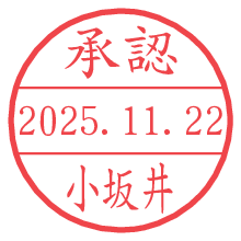オプションの「電子透かし」をチェックし[生成]すると、見た目には分からないように、UNIXタイムスタンプを識別情報としてPNG形式の日付印に埋め込みます。 日付スタンプメーカーの使い方「部署」「名前」は最大8文字まで入力が可能です。「スタンプの色」を選択し、[生成]ボタン押下で印影画像が更新され、背景を透明に設定したPNG形式とPDF形式の印影画像がリンクからダウンロードできます。 オプションの「電子透かし」は、その性格上日付印ととても相性の良い付加サービスです。 別ページの「タイムスタンプと電子透かし」でも詳しく解説しますが、このオプションを追加することで、日付印が生成された日時に確かにその印が存在していることが証明されます。 ![]() 小坂井さんの電子印鑑が作れます。社内でのデータ書類閲覧確認用など、認印的な使い方のできる電子印鑑が作れます。 ![]() 古代文字で落款印が作れます。「落款スタンプメーカー」で作品を引き立たせる落款印が作れます。