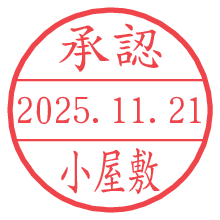 オプションの「電子透かし」をチェックし[生成]すると、見た目には分からないように、UNIXタイムスタンプを識別情報としてPNG形式の日付印に埋め込みます。 日付スタンプメーカーの使い方「部署」「名前」は最大8文字まで入力が可能です。「スタンプの色」を選択し、[生成]ボタン押下で印影画像が更新され、背景を透明に設定したPNG形式とPDF形式の印影画像がリンクからダウンロードできます。 オプションの「電子透かし」は、その性格上日付印ととても相性の良い付加サービスです。 別ページの「タイムスタンプと電子透かし」でも詳しく解説しますが、このオプションを追加することで、日付印が生成された日時に確かにその印が存在していることが証明されます。 ![]() 小屋敷さんの電子印鑑が作れます。社内でのデータ書類閲覧確認用など、認印的な使い方のできる電子印鑑が作れます。 ![]() 古代文字で落款印が作れます。「落款スタンプメーカー」で作品を引き立たせる落款印が作れます。