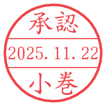 オプションの「電子透かし」をチェックし[生成]すると、見た目には分からないように、UNIXタイムスタンプを識別情報としてPNG形式の日付印に埋め込みます。 日付スタンプメーカーの使い方「部署」「名前」は最大8文字まで入力が可能です。「スタンプの色」を選択し、[生成]ボタン押下で印影画像が更新され、背景を透明に設定したPNG形式とPDF形式の印影画像がリンクからダウンロードできます。 オプションの「電子透かし」は、その性格上日付印ととても相性の良い付加サービスです。 別ページの「タイムスタンプと電子透かし」でも詳しく解説しますが、このオプションを追加することで、日付印が生成された日時に確かにその印が存在していることが証明されます。 ![]() 小巻さんの電子印鑑が作れます。社内でのデータ書類閲覧確認用など、認印的な使い方のできる電子印鑑が作れます。 ![]() 古代文字で落款印が作れます。「落款スタンプメーカー」で作品を引き立たせる落款印が作れます。
