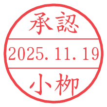 オプションの「電子透かし」をチェックし[生成]すると、見た目には分からないように、UNIXタイムスタンプを識別情報としてPNG形式の日付印に埋め込みます。 日付スタンプメーカーの使い方「部署」「名前」は最大8文字まで入力が可能です。「スタンプの色」を選択し、[生成]ボタン押下で印影画像が更新され、背景を透明に設定したPNG形式とPDF形式の印影画像がリンクからダウンロードできます。 オプションの「電子透かし」は、その性格上日付印ととても相性の良い付加サービスです。 別ページの「タイムスタンプと電子透かし」でも詳しく解説しますが、このオプションを追加することで、日付印が生成された日時に確かにその印が存在していることが証明されます。 ![]() 小栁さんの電子印鑑が作れます。社内でのデータ書類閲覧確認用など、認印的な使い方のできる電子印鑑が作れます。 ![]() 古代文字で落款印が作れます。「落款スタンプメーカー」で作品を引き立たせる落款印が作れます。