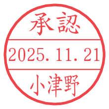 オプションの「電子透かし」をチェックし[生成]すると、見た目には分からないように、UNIXタイムスタンプを識別情報としてPNG形式の日付印に埋め込みます。 日付スタンプメーカーの使い方「部署」「名前」は最大8文字まで入力が可能です。「スタンプの色」を選択し、[生成]ボタン押下で印影画像が更新され、背景を透明に設定したPNG形式とPDF形式の印影画像がリンクからダウンロードできます。 オプションの「電子透かし」は、その性格上日付印ととても相性の良い付加サービスです。 別ページの「タイムスタンプと電子透かし」でも詳しく解説しますが、このオプションを追加することで、日付印が生成された日時に確かにその印が存在していることが証明されます。 ![]() 小津野さんの電子印鑑が作れます。社内でのデータ書類閲覧確認用など、認印的な使い方のできる電子印鑑が作れます。 ![]() 古代文字で落款印が作れます。「落款スタンプメーカー」で作品を引き立たせる落款印が作れます。