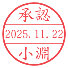 オプションの「電子透かし」をチェックし[生成]すると、見た目には分からないように、UNIXタイムスタンプを識別情報としてPNG形式の日付印に埋め込みます。 日付スタンプメーカーの使い方「部署」「名前」は最大8文字まで入力が可能です。「スタンプの色」を選択し、[生成]ボタン押下で印影画像が更新され、背景を透明に設定したPNG形式とPDF形式の印影画像がリンクからダウンロードできます。 オプションの「電子透かし」は、その性格上日付印ととても相性の良い付加サービスです。 別ページの「タイムスタンプと電子透かし」でも詳しく解説しますが、このオプションを追加することで、日付印が生成された日時に確かにその印が存在していることが証明されます。 ![]() 小淵さんの電子印鑑が作れます。社内でのデータ書類閲覧確認用など、認印的な使い方のできる電子印鑑が作れます。 ![]() 古代文字で落款印が作れます。「落款スタンプメーカー」で作品を引き立たせる落款印が作れます。