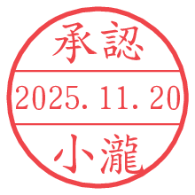オプションの「電子透かし」をチェックし[生成]すると、見た目には分からないように、UNIXタイムスタンプを識別情報としてPNG形式の日付印に埋め込みます。 日付スタンプメーカーの使い方「部署」「名前」は最大8文字まで入力が可能です。「スタンプの色」を選択し、[生成]ボタン押下で印影画像が更新され、背景を透明に設定したPNG形式とPDF形式の印影画像がリンクからダウンロードできます。 オプションの「電子透かし」は、その性格上日付印ととても相性の良い付加サービスです。 別ページの「タイムスタンプと電子透かし」でも詳しく解説しますが、このオプションを追加することで、日付印が生成された日時に確かにその印が存在していることが証明されます。 ![]() 小瀧さんの電子印鑑が作れます。社内でのデータ書類閲覧確認用など、認印的な使い方のできる電子印鑑が作れます。 ![]() 古代文字で落款印が作れます。「落款スタンプメーカー」で作品を引き立たせる落款印が作れます。