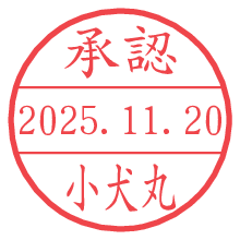 オプションの「電子透かし」をチェックし[生成]すると、見た目には分からないように、UNIXタイムスタンプを識別情報としてPNG形式の日付印に埋め込みます。 日付スタンプメーカーの使い方「部署」「名前」は最大8文字まで入力が可能です。「スタンプの色」を選択し、[生成]ボタン押下で印影画像が更新され、背景を透明に設定したPNG形式とPDF形式の印影画像がリンクからダウンロードできます。 オプションの「電子透かし」は、その性格上日付印ととても相性の良い付加サービスです。 別ページの「タイムスタンプと電子透かし」でも詳しく解説しますが、このオプションを追加することで、日付印が生成された日時に確かにその印が存在していることが証明されます。 ![]() 小犬丸さんの電子印鑑が作れます。社内でのデータ書類閲覧確認用など、認印的な使い方のできる電子印鑑が作れます。 ![]() 古代文字で落款印が作れます。「落款スタンプメーカー」で作品を引き立たせる落款印が作れます。