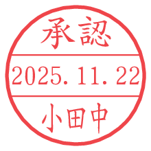 オプションの「電子透かし」をチェックし[生成]すると、見た目には分からないように、UNIXタイムスタンプを識別情報としてPNG形式の日付印に埋め込みます。 日付スタンプメーカーの使い方「部署」「名前」は最大8文字まで入力が可能です。「スタンプの色」を選択し、[生成]ボタン押下で印影画像が更新され、背景を透明に設定したPNG形式とPDF形式の印影画像がリンクからダウンロードできます。 オプションの「電子透かし」は、その性格上日付印ととても相性の良い付加サービスです。 別ページの「タイムスタンプと電子透かし」でも詳しく解説しますが、このオプションを追加することで、日付印が生成された日時に確かにその印が存在していることが証明されます。 ![]() 小田中さんの電子印鑑が作れます。社内でのデータ書類閲覧確認用など、認印的な使い方のできる電子印鑑が作れます。 ![]() 古代文字で落款印が作れます。「落款スタンプメーカー」で作品を引き立たせる落款印が作れます。
