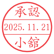 オプションの「電子透かし」をチェックし[生成]すると、見た目には分からないように、UNIXタイムスタンプを識別情報としてPNG形式の日付印に埋め込みます。 日付スタンプメーカーの使い方「部署」「名前」は最大8文字まで入力が可能です。「スタンプの色」を選択し、[生成]ボタン押下で印影画像が更新され、背景を透明に設定したPNG形式とPDF形式の印影画像がリンクからダウンロードできます。 オプションの「電子透かし」は、その性格上日付印ととても相性の良い付加サービスです。 別ページの「タイムスタンプと電子透かし」でも詳しく解説しますが、このオプションを追加することで、日付印が生成された日時に確かにその印が存在していることが証明されます。 ![]() 小舘さんの電子印鑑が作れます。社内でのデータ書類閲覧確認用など、認印的な使い方のできる電子印鑑が作れます。 ![]() 古代文字で落款印が作れます。「落款スタンプメーカー」で作品を引き立たせる落款印が作れます。