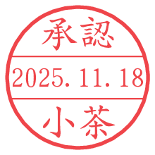 オプションの「電子透かし」をチェックし[生成]すると、見た目には分からないように、UNIXタイムスタンプを識別情報としてPNG形式の日付印に埋め込みます。 日付スタンプメーカーの使い方「部署」「名前」は最大8文字まで入力が可能です。「スタンプの色」を選択し、[生成]ボタン押下で印影画像が更新され、背景を透明に設定したPNG形式とPDF形式の印影画像がリンクからダウンロードできます。 オプションの「電子透かし」は、その性格上日付印ととても相性の良い付加サービスです。 別ページの「タイムスタンプと電子透かし」でも詳しく解説しますが、このオプションを追加することで、日付印が生成された日時に確かにその印が存在していることが証明されます。 ![]() 小茶さんの電子印鑑が作れます。社内でのデータ書類閲覧確認用など、認印的な使い方のできる電子印鑑が作れます。 ![]() 古代文字で落款印が作れます。「落款スタンプメーカー」で作品を引き立たせる落款印が作れます。