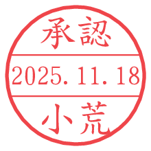 オプションの「電子透かし」をチェックし[生成]すると、見た目には分からないように、UNIXタイムスタンプを識別情報としてPNG形式の日付印に埋め込みます。 日付スタンプメーカーの使い方「部署」「名前」は最大8文字まで入力が可能です。「スタンプの色」を選択し、[生成]ボタン押下で印影画像が更新され、背景を透明に設定したPNG形式とPDF形式の印影画像がリンクからダウンロードできます。 オプションの「電子透かし」は、その性格上日付印ととても相性の良い付加サービスです。 別ページの「タイムスタンプと電子透かし」でも詳しく解説しますが、このオプションを追加することで、日付印が生成された日時に確かにその印が存在していることが証明されます。 ![]() 小荒さんの電子印鑑が作れます。社内でのデータ書類閲覧確認用など、認印的な使い方のできる電子印鑑が作れます。 ![]() 古代文字で落款印が作れます。「落款スタンプメーカー」で作品を引き立たせる落款印が作れます。