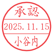 オプションの「電子透かし」をチェックし[生成]すると、見た目には分からないように、UNIXタイムスタンプを識別情報としてPNG形式の日付印に埋め込みます。 日付スタンプメーカーの使い方「部署」「名前」は最大8文字まで入力が可能です。「スタンプの色」を選択し、[生成]ボタン押下で印影画像が更新され、背景を透明に設定したPNG形式とPDF形式の印影画像がリンクからダウンロードできます。 オプションの「電子透かし」は、その性格上日付印ととても相性の良い付加サービスです。 別ページの「タイムスタンプと電子透かし」でも詳しく解説しますが、このオプションを追加することで、日付印が生成された日時に確かにその印が存在していることが証明されます。 ![]() 小谷内さんの電子印鑑が作れます。社内でのデータ書類閲覧確認用など、認印的な使い方のできる電子印鑑が作れます。 ![]() 古代文字で落款印が作れます。「落款スタンプメーカー」で作品を引き立たせる落款印が作れます。
