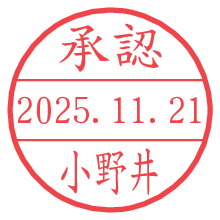 オプションの「電子透かし」をチェックし[生成]すると、見た目には分からないように、UNIXタイムスタンプを識別情報としてPNG形式の日付印に埋め込みます。 日付スタンプメーカーの使い方「部署」「名前」は最大8文字まで入力が可能です。「スタンプの色」を選択し、[生成]ボタン押下で印影画像が更新され、背景を透明に設定したPNG形式とPDF形式の印影画像がリンクからダウンロードできます。 オプションの「電子透かし」は、その性格上日付印ととても相性の良い付加サービスです。 別ページの「タイムスタンプと電子透かし」でも詳しく解説しますが、このオプションを追加することで、日付印が生成された日時に確かにその印が存在していることが証明されます。 ![]() 小野井さんの電子印鑑が作れます。社内でのデータ書類閲覧確認用など、認印的な使い方のできる電子印鑑が作れます。 ![]() 古代文字で落款印が作れます。「落款スタンプメーカー」で作品を引き立たせる落款印が作れます。