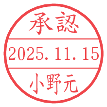 オプションの「電子透かし」をチェックし[生成]すると、見た目には分からないように、UNIXタイムスタンプを識別情報としてPNG形式の日付印に埋め込みます。 日付スタンプメーカーの使い方「部署」「名前」は最大8文字まで入力が可能です。「スタンプの色」を選択し、[生成]ボタン押下で印影画像が更新され、背景を透明に設定したPNG形式とPDF形式の印影画像がリンクからダウンロードできます。 オプションの「電子透かし」は、その性格上日付印ととても相性の良い付加サービスです。 別ページの「タイムスタンプと電子透かし」でも詳しく解説しますが、このオプションを追加することで、日付印が生成された日時に確かにその印が存在していることが証明されます。 ![]() 小野元さんの電子印鑑が作れます。社内でのデータ書類閲覧確認用など、認印的な使い方のできる電子印鑑が作れます。 ![]() 古代文字で落款印が作れます。「落款スタンプメーカー」で作品を引き立たせる落款印が作れます。