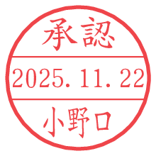 オプションの「電子透かし」をチェックし[生成]すると、見た目には分からないように、UNIXタイムスタンプを識別情報としてPNG形式の日付印に埋め込みます。 日付スタンプメーカーの使い方「部署」「名前」は最大8文字まで入力が可能です。「スタンプの色」を選択し、[生成]ボタン押下で印影画像が更新され、背景を透明に設定したPNG形式とPDF形式の印影画像がリンクからダウンロードできます。 オプションの「電子透かし」は、その性格上日付印ととても相性の良い付加サービスです。 別ページの「タイムスタンプと電子透かし」でも詳しく解説しますが、このオプションを追加することで、日付印が生成された日時に確かにその印が存在していることが証明されます。 ![]() 小野口さんの電子印鑑が作れます。社内でのデータ書類閲覧確認用など、認印的な使い方のできる電子印鑑が作れます。 ![]() 古代文字で落款印が作れます。「落款スタンプメーカー」で作品を引き立たせる落款印が作れます。