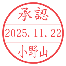 オプションの「電子透かし」をチェックし[生成]すると、見た目には分からないように、UNIXタイムスタンプを識別情報としてPNG形式の日付印に埋め込みます。 日付スタンプメーカーの使い方「部署」「名前」は最大8文字まで入力が可能です。「スタンプの色」を選択し、[生成]ボタン押下で印影画像が更新され、背景を透明に設定したPNG形式とPDF形式の印影画像がリンクからダウンロードできます。 オプションの「電子透かし」は、その性格上日付印ととても相性の良い付加サービスです。 別ページの「タイムスタンプと電子透かし」でも詳しく解説しますが、このオプションを追加することで、日付印が生成された日時に確かにその印が存在していることが証明されます。 ![]() 小野山さんの電子印鑑が作れます。社内でのデータ書類閲覧確認用など、認印的な使い方のできる電子印鑑が作れます。 ![]() 古代文字で落款印が作れます。「落款スタンプメーカー」で作品を引き立たせる落款印が作れます。