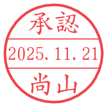 オプションの「電子透かし」をチェックし[生成]すると、見た目には分からないように、UNIXタイムスタンプを識別情報としてPNG形式の日付印に埋め込みます。 日付スタンプメーカーの使い方「部署」「名前」は最大8文字まで入力が可能です。「スタンプの色」を選択し、[生成]ボタン押下で印影画像が更新され、背景を透明に設定したPNG形式とPDF形式の印影画像がリンクからダウンロードできます。 オプションの「電子透かし」は、その性格上日付印ととても相性の良い付加サービスです。 別ページの「タイムスタンプと電子透かし」でも詳しく解説しますが、このオプションを追加することで、日付印が生成された日時に確かにその印が存在していることが証明されます。 ![]() 尚山さんの電子印鑑が作れます。社内でのデータ書類閲覧確認用など、認印的な使い方のできる電子印鑑が作れます。 ![]() 古代文字で落款印が作れます。「落款スタンプメーカー」で作品を引き立たせる落款印が作れます。