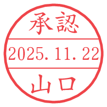 オプションの「電子透かし」をチェックし[生成]すると、見た目には分からないように、UNIXタイムスタンプを識別情報としてPNG形式の日付印に埋め込みます。 日付スタンプメーカーの使い方「部署」「名前」は最大8文字まで入力が可能です。「スタンプの色」を選択し、[生成]ボタン押下で印影画像が更新され、背景を透明に設定したPNG形式とPDF形式の印影画像がリンクからダウンロードできます。 オプションの「電子透かし」は、その性格上日付印ととても相性の良い付加サービスです。 別ページの「タイムスタンプと電子透かし」でも詳しく解説しますが、このオプションを追加することで、日付印が生成された日時に確かにその印が存在していることが証明されます。 ![]() 山口さんの電子印鑑が作れます。社内でのデータ書類閲覧確認用など、認印的な使い方のできる電子印鑑が作れます。 ![]() 古代文字で落款印が作れます。「落款スタンプメーカー」で作品を引き立たせる落款印が作れます。