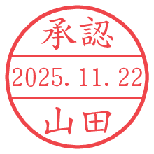 オプションの「電子透かし」をチェックし[生成]すると、見た目には分からないように、UNIXタイムスタンプを識別情報としてPNG形式の日付印に埋め込みます。 日付スタンプメーカーの使い方「部署」「名前」は最大8文字まで入力が可能です。「スタンプの色」を選択し、[生成]ボタン押下で印影画像が更新され、背景を透明に設定したPNG形式とPDF形式の印影画像がリンクからダウンロードできます。 オプションの「電子透かし」は、その性格上日付印ととても相性の良い付加サービスです。 別ページの「タイムスタンプと電子透かし」でも詳しく解説しますが、このオプションを追加することで、日付印が生成された日時に確かにその印が存在していることが証明されます。 ![]() 山田さんの電子印鑑が作れます。社内でのデータ書類閲覧確認用など、認印的な使い方のできる電子印鑑が作れます。 ![]() 古代文字で落款印が作れます。「落款スタンプメーカー」で作品を引き立たせる落款印が作れます。