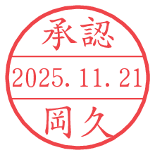 オプションの「電子透かし」をチェックし[生成]すると、見た目には分からないように、UNIXタイムスタンプを識別情報としてPNG形式の日付印に埋め込みます。 日付スタンプメーカーの使い方「部署」「名前」は最大8文字まで入力が可能です。「スタンプの色」を選択し、[生成]ボタン押下で印影画像が更新され、背景を透明に設定したPNG形式とPDF形式の印影画像がリンクからダウンロードできます。 オプションの「電子透かし」は、その性格上日付印ととても相性の良い付加サービスです。 別ページの「タイムスタンプと電子透かし」でも詳しく解説しますが、このオプションを追加することで、日付印が生成された日時に確かにその印が存在していることが証明されます。 ![]() 岡久さんの電子印鑑が作れます。社内でのデータ書類閲覧確認用など、認印的な使い方のできる電子印鑑が作れます。 ![]() 古代文字で落款印が作れます。「落款スタンプメーカー」で作品を引き立たせる落款印が作れます。