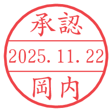 オプションの「電子透かし」をチェックし[生成]すると、見た目には分からないように、UNIXタイムスタンプを識別情報としてPNG形式の日付印に埋め込みます。 日付スタンプメーカーの使い方「部署」「名前」は最大8文字まで入力が可能です。「スタンプの色」を選択し、[生成]ボタン押下で印影画像が更新され、背景を透明に設定したPNG形式とPDF形式の印影画像がリンクからダウンロードできます。 オプションの「電子透かし」は、その性格上日付印ととても相性の良い付加サービスです。 別ページの「タイムスタンプと電子透かし」でも詳しく解説しますが、このオプションを追加することで、日付印が生成された日時に確かにその印が存在していることが証明されます。 ![]() 岡内さんの電子印鑑が作れます。社内でのデータ書類閲覧確認用など、認印的な使い方のできる電子印鑑が作れます。 ![]() 古代文字で落款印が作れます。「落款スタンプメーカー」で作品を引き立たせる落款印が作れます。