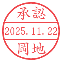 オプションの「電子透かし」をチェックし[生成]すると、見た目には分からないように、UNIXタイムスタンプを識別情報としてPNG形式の日付印に埋め込みます。 日付スタンプメーカーの使い方「部署」「名前」は最大8文字まで入力が可能です。「スタンプの色」を選択し、[生成]ボタン押下で印影画像が更新され、背景を透明に設定したPNG形式とPDF形式の印影画像がリンクからダウンロードできます。 オプションの「電子透かし」は、その性格上日付印ととても相性の良い付加サービスです。 別ページの「タイムスタンプと電子透かし」でも詳しく解説しますが、このオプションを追加することで、日付印が生成された日時に確かにその印が存在していることが証明されます。 ![]() 岡地さんの電子印鑑が作れます。社内でのデータ書類閲覧確認用など、認印的な使い方のできる電子印鑑が作れます。 ![]() 古代文字で落款印が作れます。「落款スタンプメーカー」で作品を引き立たせる落款印が作れます。