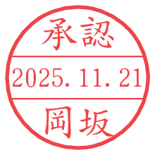 オプションの「電子透かし」をチェックし[生成]すると、見た目には分からないように、UNIXタイムスタンプを識別情報としてPNG形式の日付印に埋め込みます。 日付スタンプメーカーの使い方「部署」「名前」は最大8文字まで入力が可能です。「スタンプの色」を選択し、[生成]ボタン押下で印影画像が更新され、背景を透明に設定したPNG形式とPDF形式の印影画像がリンクからダウンロードできます。 オプションの「電子透かし」は、その性格上日付印ととても相性の良い付加サービスです。 別ページの「タイムスタンプと電子透かし」でも詳しく解説しますが、このオプションを追加することで、日付印が生成された日時に確かにその印が存在していることが証明されます。 ![]() 岡坂さんの電子印鑑が作れます。社内でのデータ書類閲覧確認用など、認印的な使い方のできる電子印鑑が作れます。 ![]() 古代文字で落款印が作れます。「落款スタンプメーカー」で作品を引き立たせる落款印が作れます。
