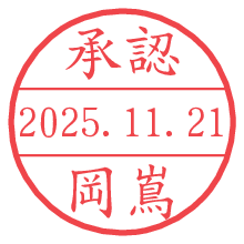 オプションの「電子透かし」をチェックし[生成]すると、見た目には分からないように、UNIXタイムスタンプを識別情報としてPNG形式の日付印に埋め込みます。 日付スタンプメーカーの使い方「部署」「名前」は最大8文字まで入力が可能です。「スタンプの色」を選択し、[生成]ボタン押下で印影画像が更新され、背景を透明に設定したPNG形式とPDF形式の印影画像がリンクからダウンロードできます。 オプションの「電子透かし」は、その性格上日付印ととても相性の良い付加サービスです。 別ページの「タイムスタンプと電子透かし」でも詳しく解説しますが、このオプションを追加することで、日付印が生成された日時に確かにその印が存在していることが証明されます。 ![]() 岡嶌さんの電子印鑑が作れます。社内でのデータ書類閲覧確認用など、認印的な使い方のできる電子印鑑が作れます。 ![]() 古代文字で落款印が作れます。「落款スタンプメーカー」で作品を引き立たせる落款印が作れます。