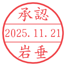 オプションの「電子透かし」をチェックし[生成]すると、見た目には分からないように、UNIXタイムスタンプを識別情報としてPNG形式の日付印に埋め込みます。 日付スタンプメーカーの使い方「部署」「名前」は最大8文字まで入力が可能です。「スタンプの色」を選択し、[生成]ボタン押下で印影画像が更新され、背景を透明に設定したPNG形式とPDF形式の印影画像がリンクからダウンロードできます。 オプションの「電子透かし」は、その性格上日付印ととても相性の良い付加サービスです。 別ページの「タイムスタンプと電子透かし」でも詳しく解説しますが、このオプションを追加することで、日付印が生成された日時に確かにその印が存在していることが証明されます。 ![]() 岩垂さんの電子印鑑が作れます。社内でのデータ書類閲覧確認用など、認印的な使い方のできる電子印鑑が作れます。 ![]() 古代文字で落款印が作れます。「落款スタンプメーカー」で作品を引き立たせる落款印が作れます。